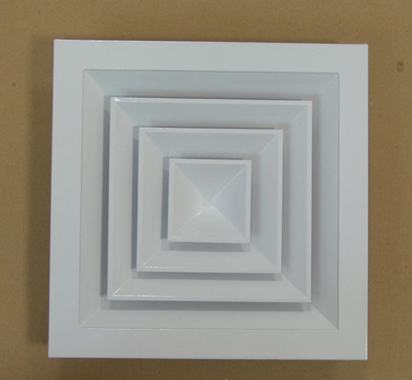 方形散流器先調(diào)挺直,表面光潔,葉片角度為固定式,葉片采用夾角片沖壓連接,整個葉片與邊框采用分離式結(jié)構(gòu),以方便安裝與調(diào)節(jié)。設(shè)計時可根據(jù)房間造型不同,選用不同出風方向的散流器,可與調(diào)節(jié)閥配套使用鋁合金表面經(jīng)陽極氧化處理,也可根據(jù)用戶要求進行靜電噴塑處理。